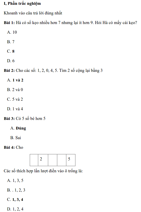 Phiếu bài tập Toán lớp 1 – Tuần 5